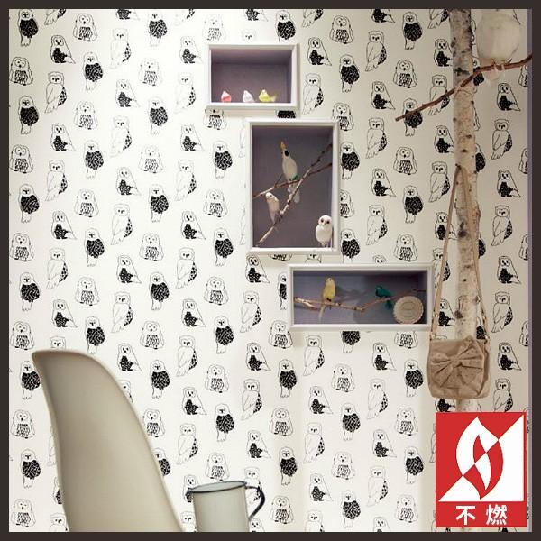 楽天市場 平日12時までなら即日出荷可 1m単位 壁紙 フクロウ柄 モノトーン Re のりなし サンゲツ Reserve リザーブ イラスト クロス 梟 アットdeco アットデコ